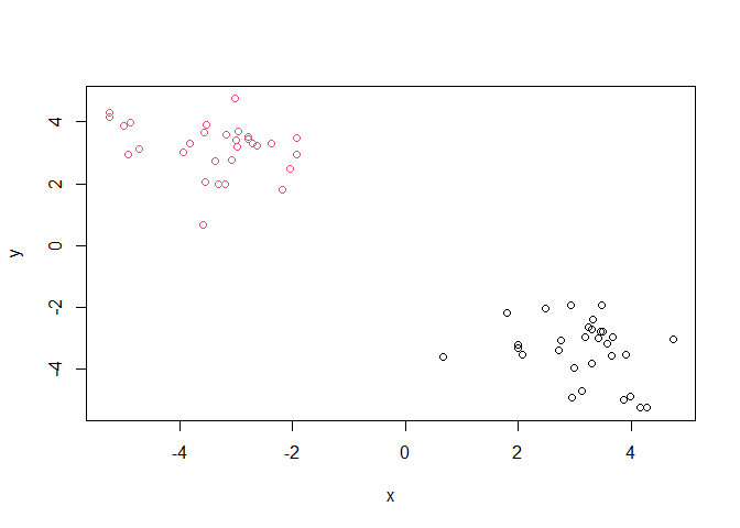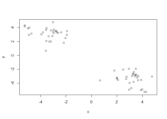 #y <- c(rnorm(30, 3), rnorm(30, -3))