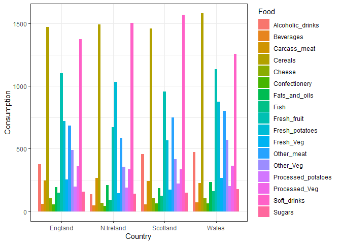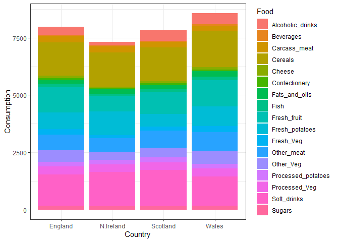 aes(x = Country, y = Consumption, fill = Food) +