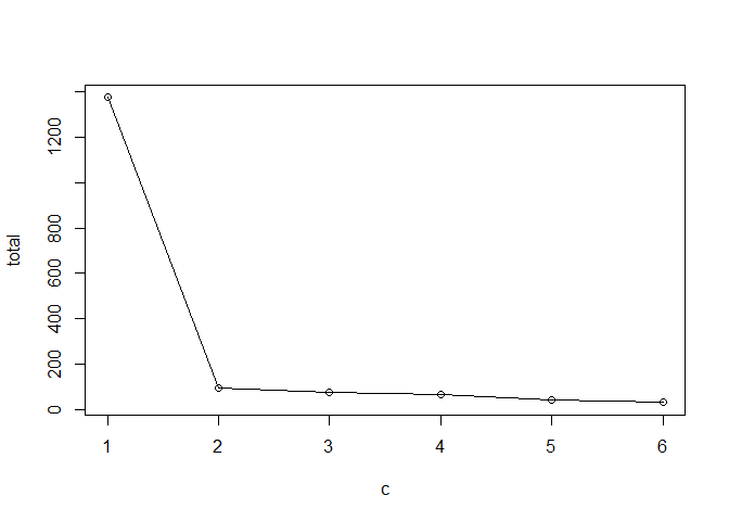 total <- c(total, kmeans(z, i)$tot.withinss)