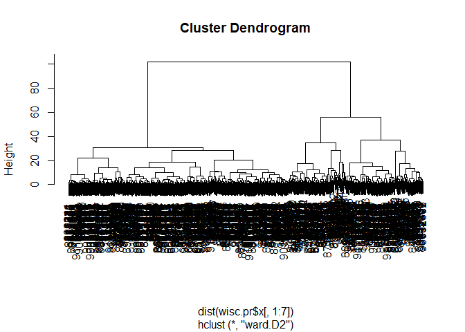 wisc.pr.hclust <- hclust(dist(wisc.pr$x[,1:7]), method="ward.D2")